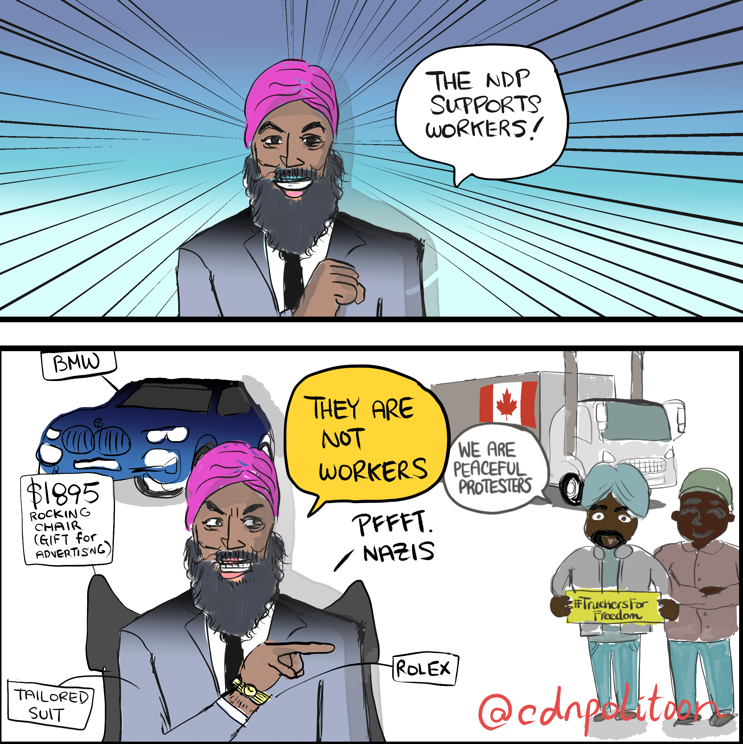 Hypocrite? Jagmeet Singh cultivates sense of luxury that doesn’t comport with party ‘message’https://www.newstbt.com/post/hypocrite-jagmeet-singh-cultivates-sense-of-luxury-that-doesn-t-comport-with-party-message BMW, Rolex, tailored suit from India…he represents the union/workers?...